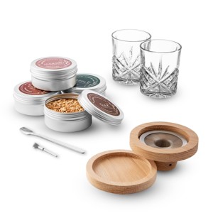 Godinger Silver 9pc Dublin Crystal Whiskey Smoker Set: Hand Wash, Double Old-Fashioned Glasses, Service for 2, Clear Drinkware