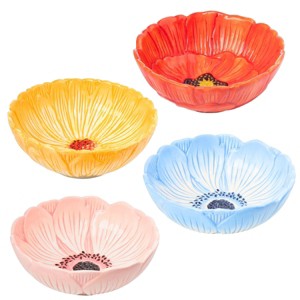 Godinger Silver Flower Shop Cereal Bowl Set: Dolomite, Floral Pattern, Round, 20 oz, Hand Wash, Multicolored, Set of 4
