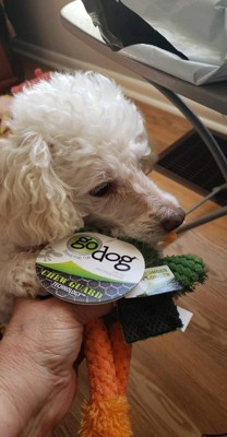 [This review was collected as part of a promotion.] This horse toy from goDog is my doggy’s new favorite toy. She loves to play tug of war with the horse’s long legs. The quality of the horse is very good and has washed well in the washing machine. This is a super cute toy and I definitely recommend it.