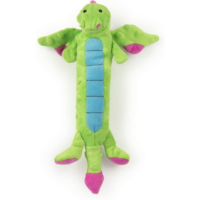 This dragon is a huge hit with my 2yr old German Shepherd. I didn't expect it to last as long as it has. She loves the floppy tail and wings. They have just the right amount of stuffing, to make it fun to shake and chew. The material is a bit more substantial than her other soft toys and it has washed well. The biggest plus (for her ears) is the large squeaker that has survived 3 months of regular squeak attacks.