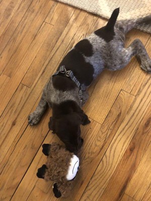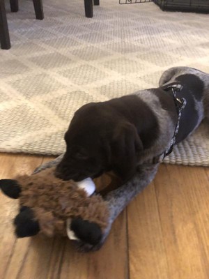 [This review was collected as part of a promotion.] I have five smaller dogs and they all love to chew and play with these stuffies! This one they all seem to love and it seems very durable! They have yet to get it tore apart and in shreds which I love that.