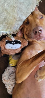 [This review was collected as part of a promotion.] It always amazes me how pups know a new toy is for them. Our Shichon immediately picked up the sloth and carried it off to his bed to better investigate. Now he carries it around wherever he goes like a new best friend, he even brings up on his window seat. This cute toy is the prefect size 6-7", has a good squeaker and a pleasant light flowery scent.
