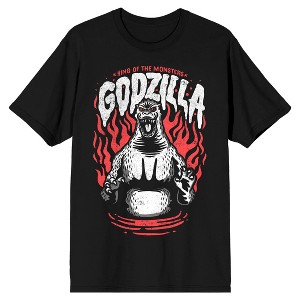 - CUSTOM DESIGNED: Show off your love for the classic monster movies with this men's Godzilla tee featuring a big, bold graphic of the iconic monster flexing alongside fire-red flames - an eye-catching image that has been professionally printed against a bold black background for long-lasting print quality.
