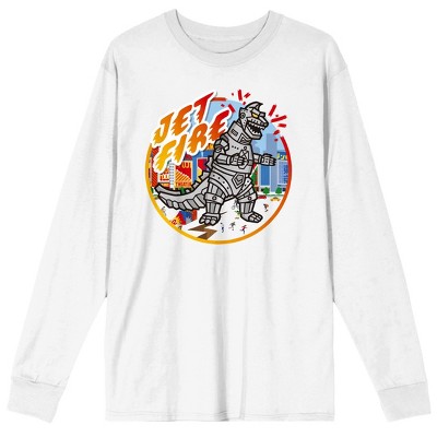 Embrace the iconic power of Godzilla with this adult white crew neck long sleeve shirt. Featuring detailed Japanese art of Rodan flying over a temple, this shirt is perfect for fans of the kaiju universe. Made from a blend of cotton and polyester, it offers both comfort and durability. Easy to maintain, it can be machine washed on cold with like colors and tumble dried on low heat.