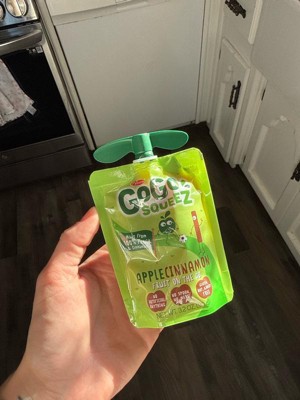 SqueeZ out the best with GoGo squeeZ Apple Cinnamon pouches! These Fruit On the Go applesauce pouches are delicious snacks made from 100% fruit and cinnamon. Each fruit pouch is simply yummy with no sugar added and contains ½ serving of fruit, ensuring your family gets the good stuff. These fruit pouches for kids and adults are gluten-free, dairy-free, nut-free, kosher, Non-GMO Project Verified, and BPA-free. Available in so many flavors made with simple ingredients, GoGo squeeZ fruit blend pouches have no artificial flavors, added colors, or high fructose corn syrup. Great for kids snacks, school snacks, snack bags, or office snacks, these individually wrapped snacks fit into any snack box or lunch box. Recycle empty pouches with TerraCycle®. Discover even more to squeeze with GoGo squeeZ Fruit & VeggieZ, GoGo squeeZ YogurtZ and GoGo squeeZ PuddingZ snack packs. Not a low calorie food. See Nutrition Information for sugar and calorie content. †The USDA considers ½ cup of fruit a serving. Participation is limited.