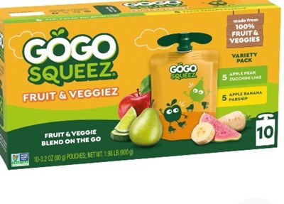 GoGo SqueeZ Fruit & VeggieZ Applesauce and Puree Variety Pack Apple Banana Parsnip & Apple Pear Zucchini & Lime Pouches - 38.4oz/12ct