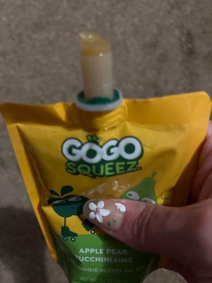 [This review was collected as part of a promotion.] I was very impressed with these GoGo squeez. My child and I tried Apple Pear Zucchini Lime. I thought it was going to taste funky but it was extremely good . Both my child and I both enjoyed it. They taste better cold. The texture is thicker than apple sauce.