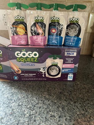 GoGo SqueeZ yogurtZ Low Fat Yogurt Space Discovery Pack Strawberry Banana and Blueberry Moon Pouches - 3oz/16ct