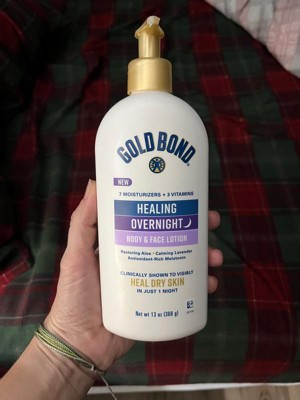 Gold Bond Healing Overnight Body & Face Lotion for Dry Skin with Hyaluronic Acid, Aloe & Melatonin - 13oz