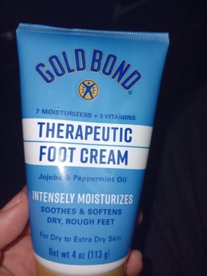 Dry, rough foot skin and heels deserve therapeutic relief. Gold Bond Therapeutic Foot Cream provides soothing relief. The unique triple action of this foot cream cools, smooths, and softens rough feet and heels. Made with seven moisturizers and vitamins A, C, and E, this formula intensely nourishes and hydrates skin. Best of all, Gold Bond Therapeutic Foot Cream is nongreasy and lightly scented, so you can feel confident using it anytime your feet need to feel rehydrated and refreshed. Bring dry, rough feet back to life with triple action relief from Gold Bond.