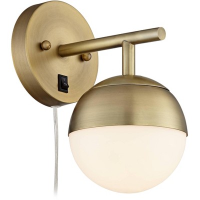 Gold Brass Wall Sconce with Rotating Steel Arm, Remote Control Wall Light, Tulip High-Transmittance Glass Shade for Bedroom, 4.52'' H X 8.19'' W