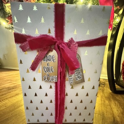 I absolutely love the quality of this paper and it is so beautiful. However, the gift tag stickers and bows will not stick to it. Sadly, the majority of them have fallen off under my tree and I don’t even know if the gifts are going to the right people. As much as I love this paper, I won’t buy it again for this reason unless it’s made from a different material. Very disappointing.