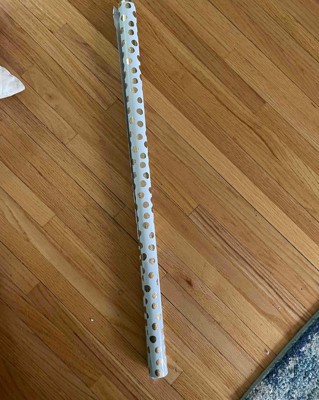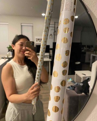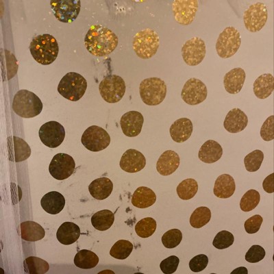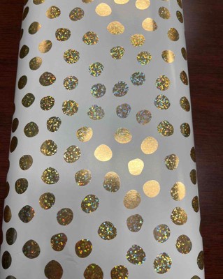 A: The design features scattered dots accented with gold metallic foil on a bright white background.