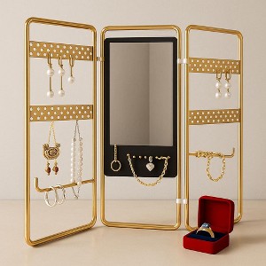 Gold Jewelry Organizer Stand – 3-Piece Foldable
