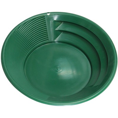 Starter kit for gold prospecting includes one small VR gold pan, one snifter bottle, one glass vial, and one stainless steel tweezer with magnifying glass. VR gold pans feature a deep 45 degree side wall, larger pan floor, aggressive large riffle set, and patented varying riffle (VR) surface texture small riffle set, allowing for greater control in separating gold fines and smaller flakes. VR gold pans hold and process a higher volume of material in each pan when compared to the "standard" gold pans you might find online or at the gas station. A 9" VR gold pan for instance, has a slightly larger capacity than a "standard" 10" gold pan. An 11" VR gold pan has a slightly larger capacity than a "standard" 12" gold pan.The snifter bottle by Sluice Fox features a superior suction nozzle to make quick work in your separated gold collection.5ml glass storage vial with screw-on plastic capCombination tweezer and magnifier tool allows you to use these two tools simultaneously while keeping the other hand on your pan. Made of stainless steel for years of use at the river.