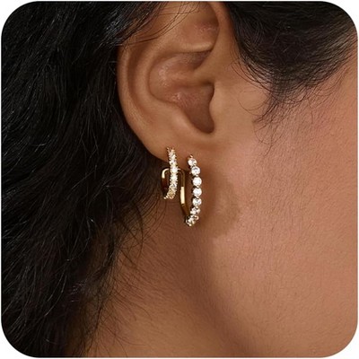 - Gold Earrings Set: This gold earrings for women contains 3 pairs of earrings consisting of square crystal zirconia earrings and studs, perfect for every woman. The gold earring stacks are lightweight, simple and sophisticated, perfect for any occasion. Worn on their own or casually paired with your favorite everyday outfits, these huggie hoop earrings will add a dazzling sparkle to your style