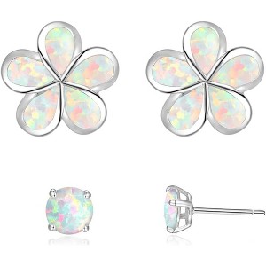 Design: This beautiful flower stud earrings set add style and elegance to your looks. Easy to match costume, made of 14K white gold plated brass and created white fire opal, you may rest assured that these gold earrings are designed to last