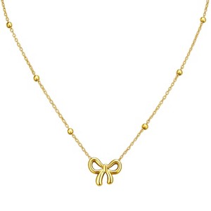 Gold-Tone Bow Necklace with Beaded Chain, Dainty Jewelry for Women, Daily & Gifting Occasions