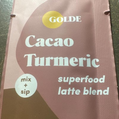 Like a hot cocoa with benefits, Golde's Cacao Turmeric latte is a powder blend of 7 essential superfoods to help you look and feel your best, featuring organic cacao. Add to hot water, milk or your morning coffee for your daily dose of superfoods. Like all of Golde's products, Cacao Turmeric latte blend is 100% superfood powered, vegan friendly, and free of added sugars.