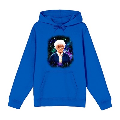 Celebrate the wit of The Golden Girls with this unisex adult athletic heather long sleeve hooded sweatshirt. Featuring a headshot of Sophia against a mesmerizing galaxy backdrop, this hoodie captures the essence of both timeless humor and cosmic charm. Crafted from a blend of cotton and polyester, it offers both comfort and durability. The adjustable hood adds extra warmth and style to your attire, making it perfect for cozy days and starry nights.