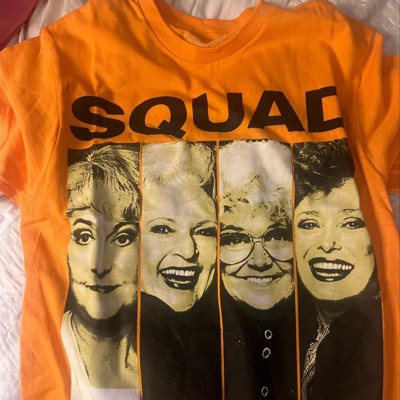 • GRAPHIC TEE: Dorothy, Rose, Sophia, and Blanche appear in stripe frames on this tee. The word Squad is printed in black above the friends. Fans of the sitcom will love to support their favorite gals with this t-shirt.