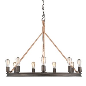 Inspired by the sea, this coastal collection features a simple design with authentic, nautical details. Tied in sailor's knots, woven ropes loop metal cleats before being suspended from maritime hooks. The contrast between the available finish options and texture of the rope and metalwork creates visual interest. Created to be hung with the lamps facing up or down, the transitional fixtures are versatile. This look is perfect for seaside retreats, casual lofts, and rustic bungalows. This 9-light chandelier creates a dramatic focal point and is graciously sized for larger living and dining areas.