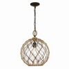 Haddoc has the look of a reclaimed sea treasure, brought home and revamped. The large, round, seeded glass is reminiscent of an iridescent bubble magically snared by a net. Enhancing the nautical-inspired design, knotted rope and contrasting hardware mimic old-world tools. These bright pendants allow for widespread illumination and are perfect in coastal settings.