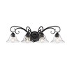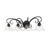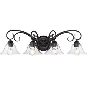 Earthy tones and organic lines make the Homestead collection a comforting addition to the transitional style home. Whether the decor is eclectic, casual, or even traditional, Homestead pieces blend well in cozy environments. Available in multiple finishes, these options give depth and weight to the collection's delicately curved arms. A selection of glass options partner perfectly with these finish options. This 4-light bath vanity is UL approved for damp locations and is ideal over a vanity or mirror.