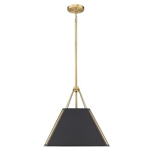 Add drama to your space with the stylish Ranik pendant. Sleek and modern, the fixture features a textured metal shade in a Natural Black finish to contrast the smoothness of the beautiful Brushed Champagne Bronze hardware. Matching strips of gold give the geometric shades a refined, tailored feel. The wide, open bottom of the elegant shade allows for bright task and ambient lighting. Hang the pendant alone or create a stunning look with multiple fixtures.