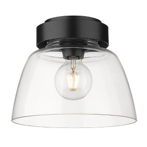 Remy's clear modern glass and smooth finish options create versatile looks that complement a wide range of styles. The simple canopy is available in select finishes to create minimalist looks that pair well with existing decor. Vintage-inspired, the wide clear glass offers widespread illumination and allows for quick bulb changes. Hang these damp-rated fixtures in a hallway or bathroom.