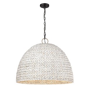 Wild by nature, Rue draws inspiration from ancestral basket-making traditions. Painted Sweet Grass is braided in a herringbone pattern and then tightly woven into dome shades. The shape of the large shades directs light downward for excellent downlight. The chain-hung fixtures feature collapsible arms to allow the fixture's shade to be removed after installation. Modern style meets tradition within this collection s contemporary matte black finish and hand-woven shade. The look is perfect for coastal and natural interiors.