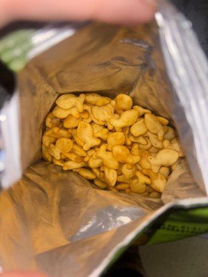 [This review was collected as part of a promotion.] I didn’t read the package, so first bite I was like Oh these are SPICY. BUT they are actually so good. The perfect combo of dill and spice. The goldfish are pretty big in size and have that perfect crunch. I’m actually surprised at how good they are and would absolutely buy more of them. They also appear to be dye free, and for that I love it even more!