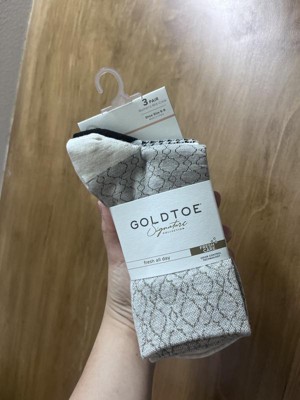 Goldtoe Signature Collection Women's 3pk Fresh Care Geo Damask Mid Crew Socks - Oatmeal Heather/Off White/Houndstooth 6-9