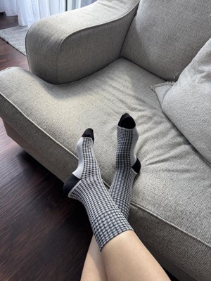 [This review was collected as part of a promotion.] These mid crew socks are so cute and chic! I love the mix of neutral tones with the printed pattern, making the perfect touch to complement any of my looks during this cooler weather, whether for work or going out. The fabric is stretchy and soft, and I like that they don't bunch up or slip when I'm walking. LOVE THEM!