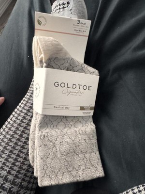 Goldtoe Signature Collection Women's 3pk Fresh Care Geo Damask Mid Crew Socks - Oatmeal Heather/Off White/Houndstooth 6-9 - 1 of 3