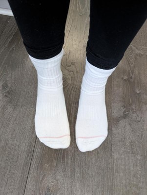 [This review was collected as part of a promotion.] These are the perfect white socks! Super soft and crazy comfortable inside my boots — I’ll be wearing them all fall. They go all the way up my calves (which are on the bigger side) but still feel comfy and not tight. And they don’t slide down at all, which I love!