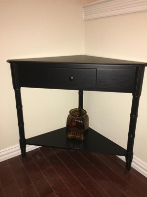 Super easy to put together. Fits into my corner perfectly and is the perfect place for my lamp. Not the strongest table, but great as an accent piece.
