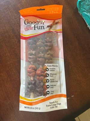 [This review was collected as part of a promotion.] I got the Good n Fun Kabob dog treats for my pup and they were an instant hit! As soon as I opened the bag my dog was excited and couldnt wait to try them! Best of all he had no tummy issues after eating them which is always a concern with new treats. I love that they keep him entertained while also being a tasty reward.