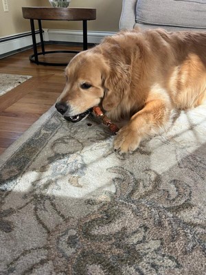 [This review was collected as part of a promotion.] My dog loves these. Great for aggressive chewers to chew on for awhile. I have a Newfoundland and its a decent size for her. The packaging is fantastic so they dont go stale and the ingredients are amazing.
