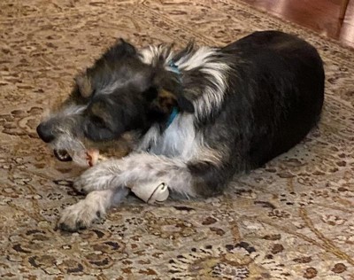 First rawhide chew I’ve given my dog. He really seems to like it. Every time he lifts it up in his mouth and looks at me, he wags his tail.
