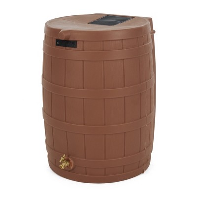 Good Ideas Impressions 65-Gallon Rain Saver Barrel Faux Palm Trunk Surface, Dual Spigot Locations with 2 Brass Spigots and Screen, Oak