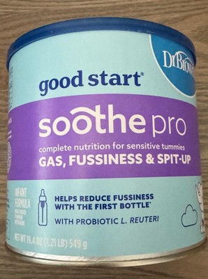 - COMPLETE NUTRITION UNIQUELY FORMULATED FOR SENSITIVE TUMMIES: Good Start | Dr. Brown's Soothe Pro Infant Formula was created to address common feeding issues, including gas, fussiness, and spit-up. Clinically tested and shown to reduce fussiness with the first bottle, as reported in study results among parents of fussy infants.