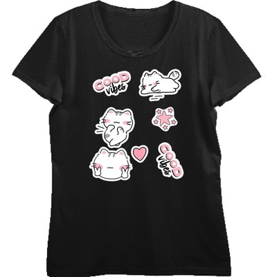 Good Vibes Cat Stickers Women's Crew Neck Short Sleeve Night Shirt