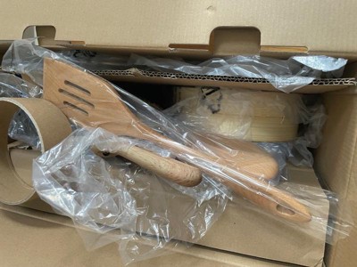 [This review was collected as part of a promotion.] Very lightweight, quality product. Love the bamboo steamer basket for dumplings. Nonstick coating is working great so far! The included utensils look very durable.
