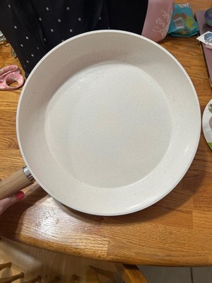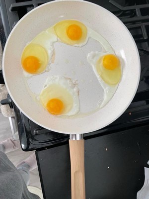 [This review was collected as part of a promotion.] Have always wanted to try a ceramic pan. Just hadn’t done it yet! Scrambled 2 eggs with American cheese-and no stick! A plus! It takes a minute to heat up even on high-but I was ok with that. Heat seems to be even. Easy to clean! Hopefully it will have some durability after some major use! 10/10 thus far.