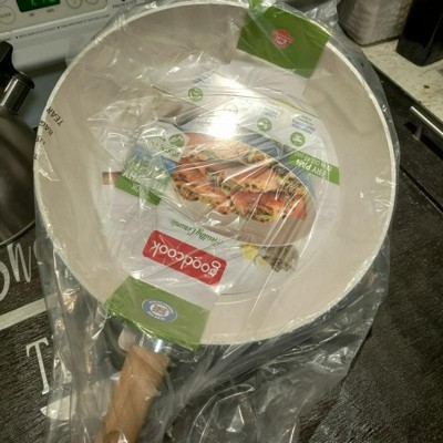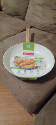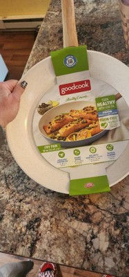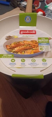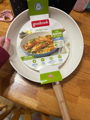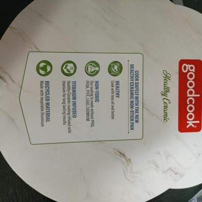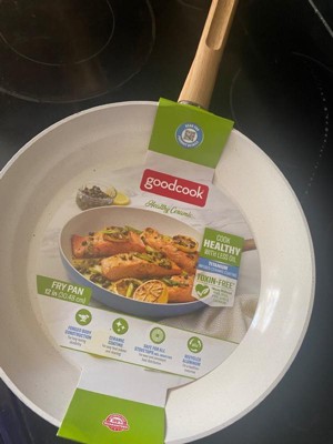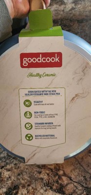 [This review was collected as part of a promotion.] I received this product from Influenster in return for my honest review. This Goodcook healthy cook ceramic non stick pan is definitely non stick! Very little butter or oil needed when I made scrambled eggs. It practically wipes clean with a cloth too. The only downside I can see with this pan is that it isn't oven safe and that it isn't meant to be used with high heat, but that's the case with most non stick pans. Easy to hand wash with a little soap and everything comes right out. I always hand dry non stick right away, and never put them under water while they are still hot to avoid warping. So easy to clean that a dishwasher isn't needed (or recommended). I'm really happy that it is made with recycled material and that it is completely non toxic. Overall I am very satisfied with this ceramic non stick pan.