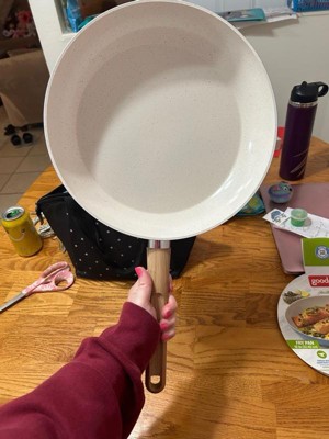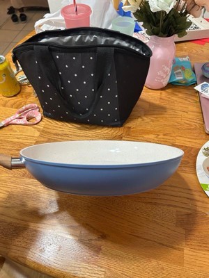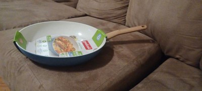 [This review was collected as part of a promotion.] I really love the size of this pan. Plus it’s beautiful. The ceramic coating looks great paired with the wooden handle and pretty blue color. I also love that it is toxin free. I’ve only used it a few times but didn’t have to use any oil at all and nothing stuck, so def a big plus!