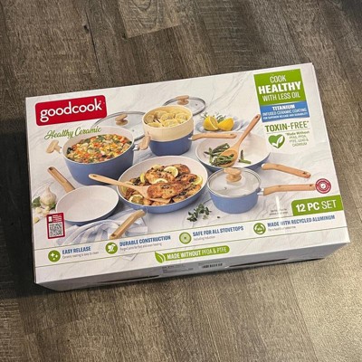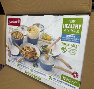 GoodCook 12pc Healthy Ceramic Cookware Set: Nonstick, Stainless Steel, Induction Compatible, Hand Wash, Blue