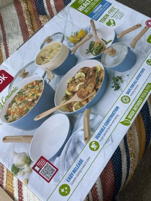 [This review was collected as part of a promotion.] I love this 12 piece ceramic cookware set in a beautiful blue color! It’s such a great versatile set including pans and pots of various sizes, a steamer basket and two wooden tools. I love that it’s ceramic nonstick coating which makes it really easy to clean and it’s non-toxic. Highly recommend!