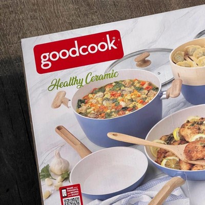 The GoodCook Healthy Ceramic Titanium-infused Cookware Set offers durability, even heat distribution, easy cleaning, versatility, and safe, non-toxic cooking.